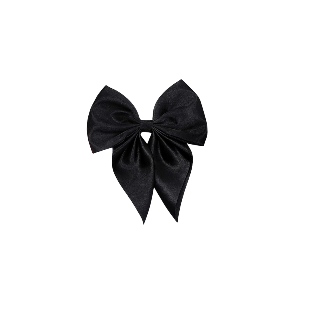 Classic black satin bow with a luxurious finish, perfect for minimal, chic, and versatile styling across all outfits.