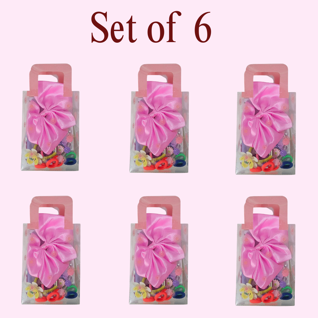 Celebrate Kanjak Puja with this thoughtfully curated Kanjak Hamper for Girls, filled with adorable accessories and jewelry. This special hamper includes a flower pendant necklace, bunny hair clip set, satin pink hair bow, glitter hair clip, daisy hair tie, colorful mini hair elastics, and a cute beaded bracelet, all neatly packed in a transparent designer gift bag. Perfect as a return gift for Navratri Kanjak, birthdays, or festive occasions, this hamper brings joy, style, and fun to every little girl. A delightful combination of utility and cuteness, sure to make your kanjak gifts memorable!