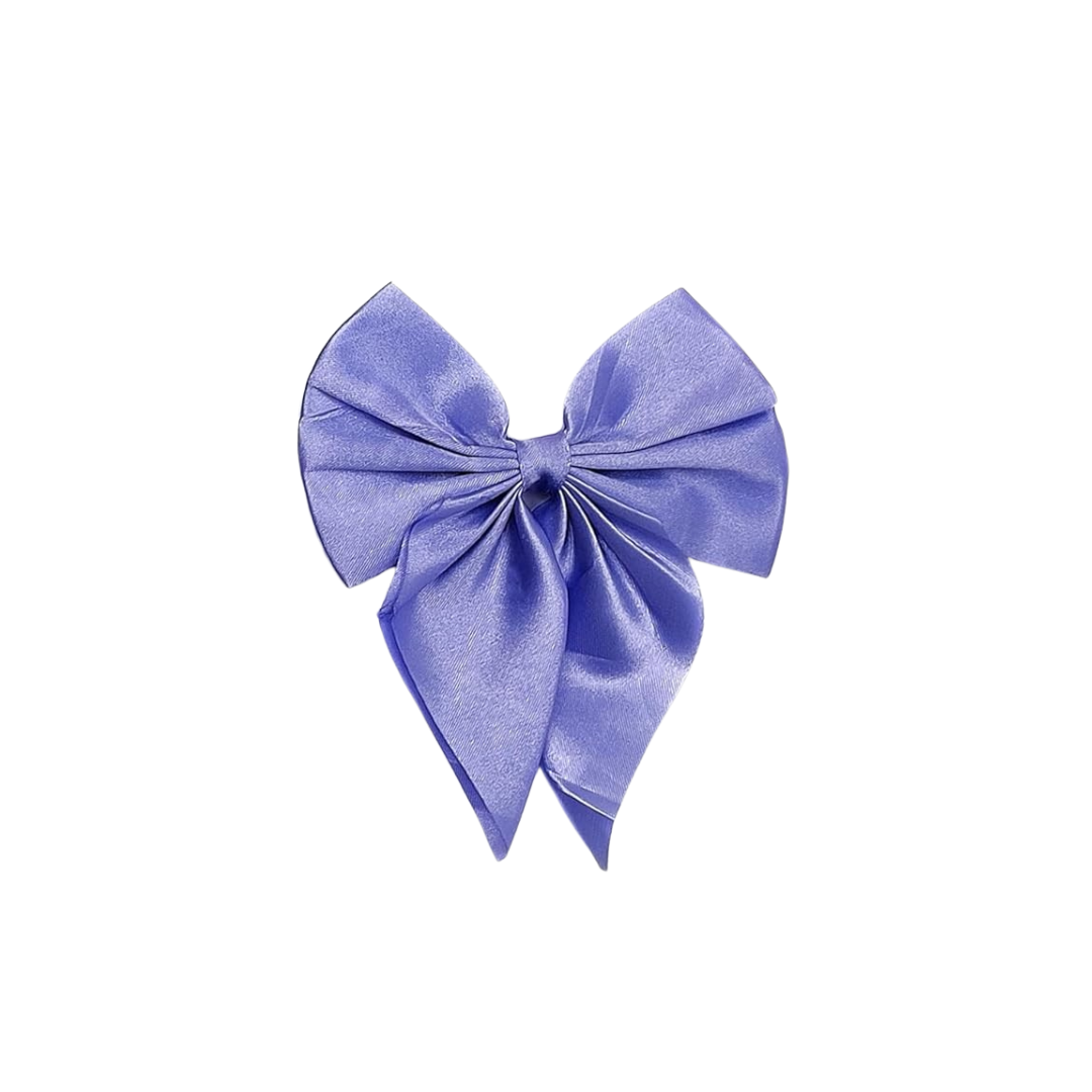 A dreamy lavender satin bow with a soft glow, perfect for trendy pastel looks, gifting, and elegant everyday wear.