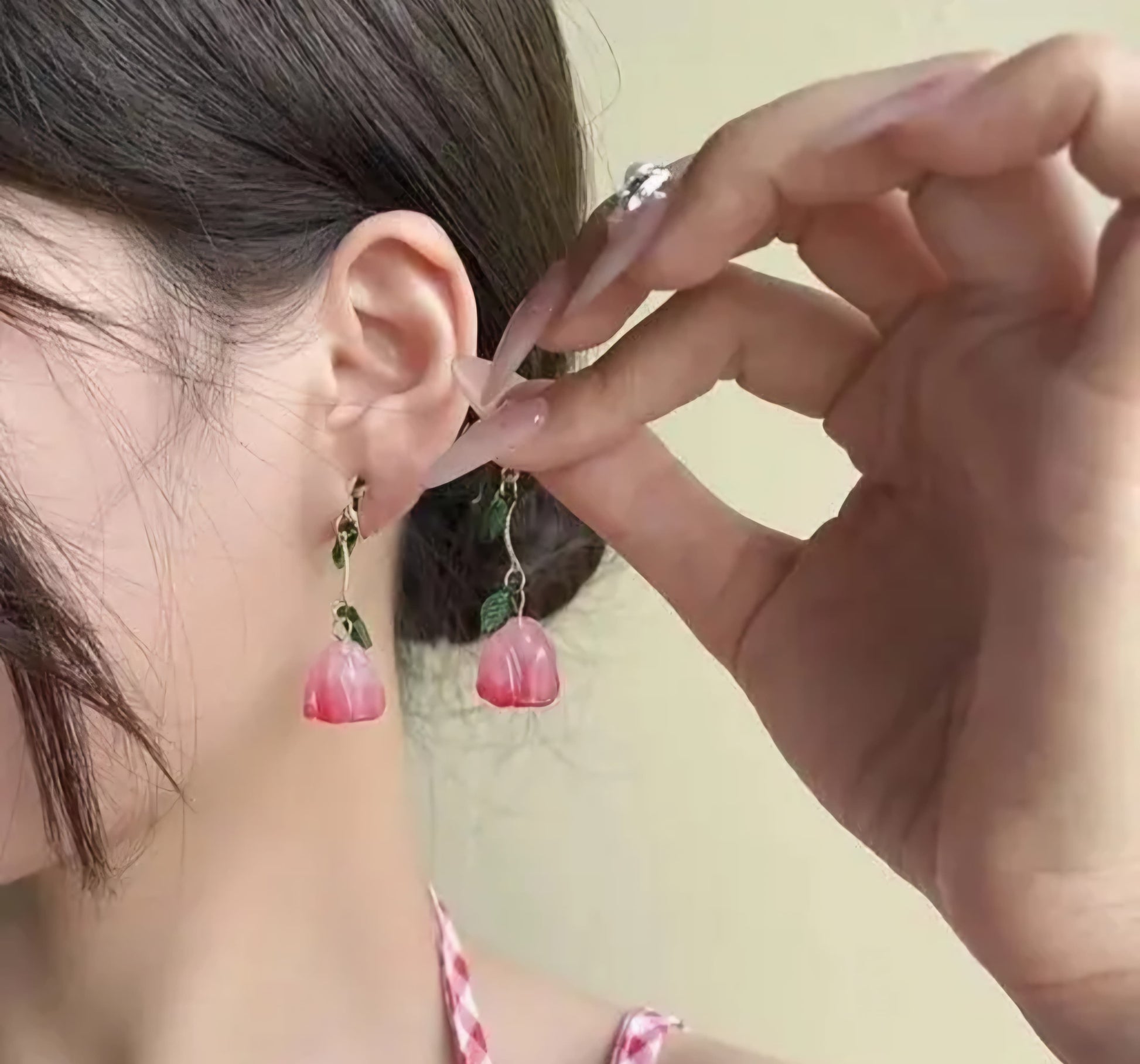 Pink Korean Style Floral Drop Earrings For Women & Girls